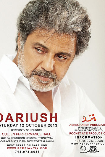 Asheghaneh Publication, in collaboration with Pocket Ace Productions, invites you to a stellar night of breathtaking performance by "The Legend", Dariush.